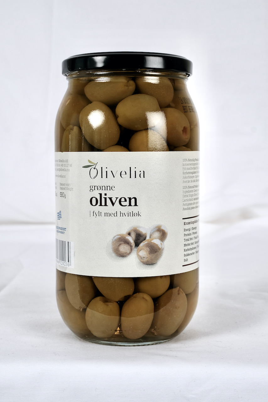 Grønn Oliven fylt med Hvitløk Olivelia i glass (6x1L)